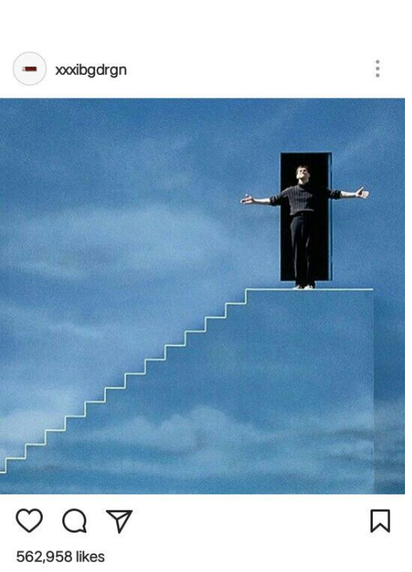 was constantly monitored. In the last part of the music video, GD jumps out from the subway, a place where he was escaping, traveling to a new place—transcending. There is an image of a blue sky where he has landed.